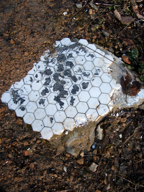 I photograph tiled floors when I see them, including this one in the late 1990s, which also served as evidence in case I was brutally murdered or came down with an incurable STD or sudden Bukowski-like alcoholism from the seediest hotel I’ve ever patronized in Niagra Falls (I mean seediest ever, not one of many in Niagra Falls).