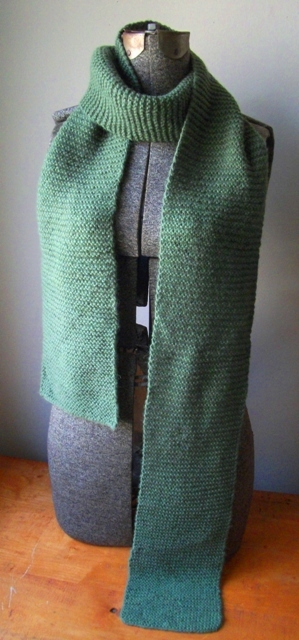 I bought the yarn for this scarf in a long since closed LYS in the Midwest. It is 100% alpaca, in probably a light worsted or sport weight, yet I’m positive I used size US7 needles since they were all I had. After knitting a few decadently smooth rows, I convinced myself that my life had to become that of an alpaca farmer. I joined mailing lists for breeders associations and farms, I read up on the fleece colors and textures, I learned that they don’t need as much land as sheep and could even be transported in a minivan, and I may have even looked at acreage for sale. However, at that time I was in graduate school and living in a squirrel-infested apartment and eating from bulk bags of dried beans and rice (I cooked them first, of course). But I thought that perhaps the fiber-bearing-animal-farmer would be a possible life for me in at least five years or so.