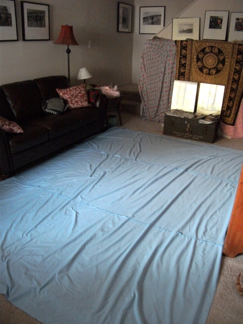 7. Discover that it will be impossible to lay and smooth out the layers flat. Even if you hop from chair to sofa, you will never be able to perform the long jump necessary from end to end and will fall several times trying.