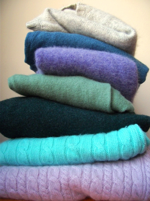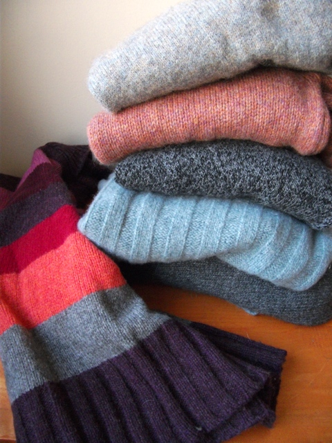 I spent an evening this week closing up the holes in some of our sweaters. I’ve been seeing beautiful and skillful examples of mending in the blogisphere lately and though lovely, they make me feel anxious. Must I learn to do everything perfectly? To have textile conservator-level mending skills to make repairs nearly invisible or mad creative ones to do a perfect herringbone in a cheeky accent color? Don’t get me wrong, I love these things and love that someone is doing them and doing them well, but for me, I still embrace absolute utilitarianism and efficiency when it comes to darning/mending/repairing. I also usually wait until I have at least three garments that need to be fixed before I sit down to do them, even though it means I’ll probably need three different thread colors and it would have taken just as much time to do them one at a time. All of the items that got a new lease on life were thrift store finds (some decades old) and I’m always what- amazed, impressed, happy? I don’t quite know the feeling, but that these things have endurance and history, both unknown and our own, and can outlive us.