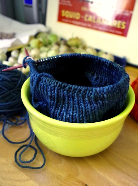I love the leaf pattern though – if I frog, I might just have enough yarn along with a few leftover skeins to make a nice throw blanket in the pattern…