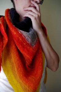 And the jury is still out on the triangle until I can wear it a bit – I’m leaning towards it’s just not my thing (side to side triangles totally are) – but I’m always futzing with the less stretchy edge – tuck in under? fold it out? let it gape? and want more tail and less triangle – maybe this needed to be even bigger, or maybe I should have increased the tails more and the triangle less – I also could have eeked out 2 more rows of yarn, but didn’t want the stress, but there’s probably enough for a picot or other edging, but I don’t really like edging, unless it’s i-cord…?