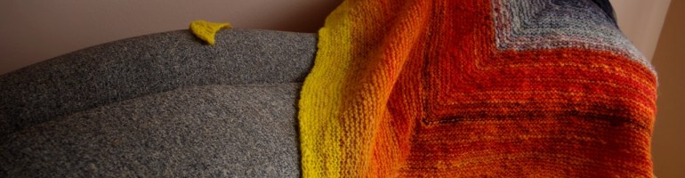 So in the end I was able to tick a few boxes off: I acquired, spun, knit, and completed something within a year – something I want to become habit – less so on the acquisition end, but I’m almost always able to go to the state fiber fest and want to support the local and local-ish folks, even if it’s only $30 worth of fiber spread out over 3 booths; I finally made a decent (still needs work, but I didn’t have to run it through an unspin cycle at least) single; I figured out my current knitting speed is very roughly only around 700 yards a month; and I made a top-down triangle about twice as large as my last one.