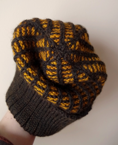 I liked the pattern and might make another eventually.  However, for the first time ever, I twisted the round when I joined and accidentally turned it into a mobius (maybe it’s not technically, but I don’t know).  I left it that way because I don’t have a twisted cowl yet and thought I’d like to play with the different draping possibilities.  But it’s a little disconcerting that I’m making a lot of rookie mistakes lately that I never made in the beginning…