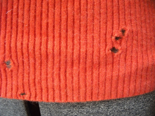 Normally I  go on ad nauseam about my utter hatred of the clothes moth but my feelings and fears are shared with anyone who has a love of all things wool, so I won’t this time.  This time I must acknowledge my thrill of finding an otherwise perfect cashmere sweater that was banned to the thrift shop for possessing a tiny hole or two, so in a sense I have the moth to thank for my awesome collection of oh-so-soft sweaters.  But I could also thank the non-needle inclined [lazy?] person who would discard something so easily fixed (and often in my size)!