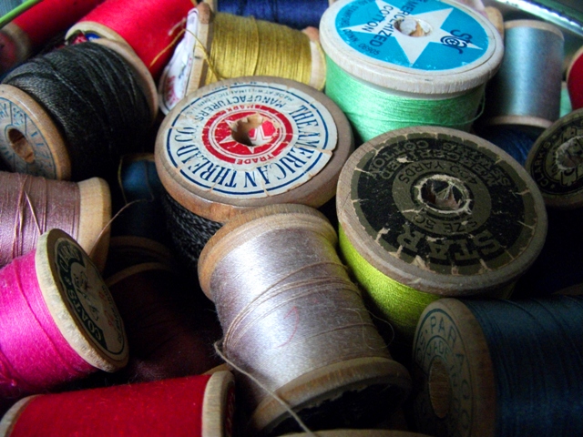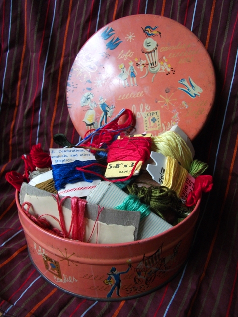 I’m on the fence a bit about using vintage supplies – on the one hand, they are supplies, meant to be used and used up, and I have no qualms about using a few inches of thread here and there to to make repairs on like-colored clothing or for a pop of color on a button or something, but on the other, they’ve become artifacts. But in the case of the tatting thread, it’s an all-out stash in itself or hoard… I don’t plan on tatting or crochet, at least at these fiddly gauges and I don’t do much embroidery, so I do need to purge it – sell it, likely and not think about if someone uses it all up on their own ghastly craft project, or squirrels it away again, or actually makes something beautiful or appreciates them as artifacts as well…